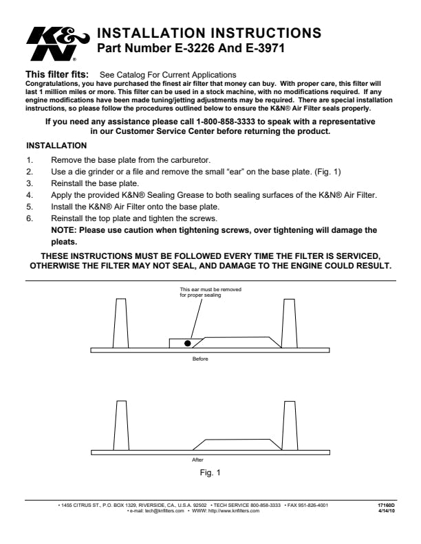 1 Air Filter, 1 K&N 1oz Sealing Grease |