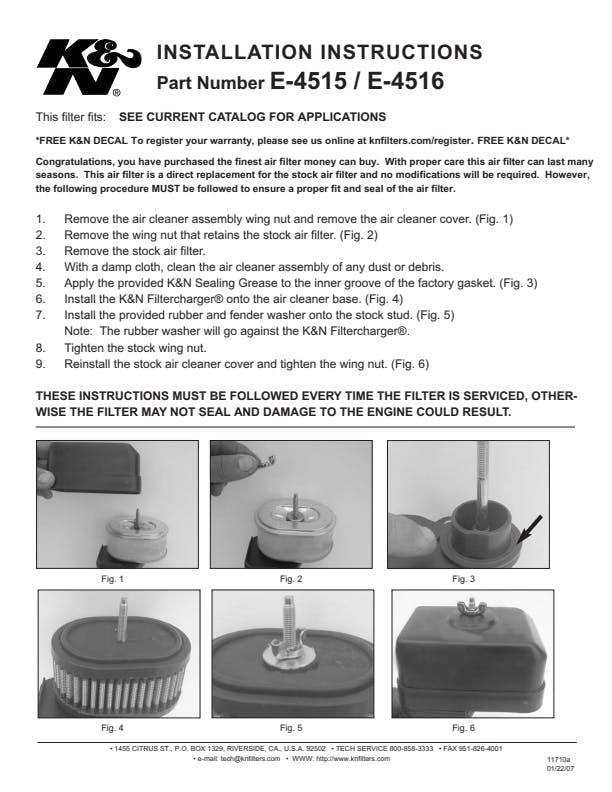 | Package Contents | 1 Air Filter, 1 K&N 1oz Sealing Grease |