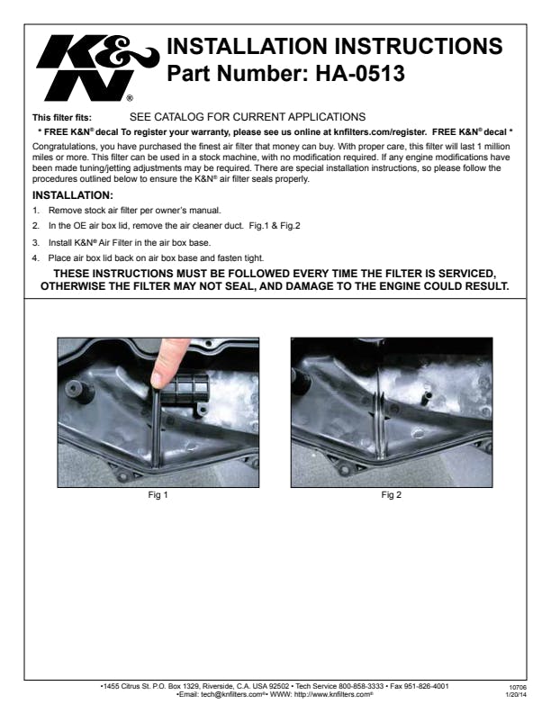 K&N's high-flow air filters are available as a replacement for your stock motorcycle air filter element. They are custom engineered to fit your specific application and are designed to provide low restriction and increased performance, while providing excellent engine protection for your motorcycle.