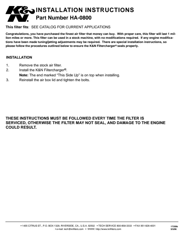 K&N's high-flow air filters are available as a replacement for your stock motorcycle air filter element. They are custom engineered to fit your specific application and are designed to provide low restriction and increased performance, while providing excellent engine protection for your motorcycle.