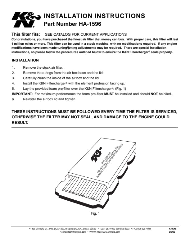 K&N's high-flow air filters are available as a replacement for your stock motorcycle air filter element. They are custom engineered to fit your specific application and are designed to provide low restriction and increased performance, while providing excellent engine protection for your motorcycle.