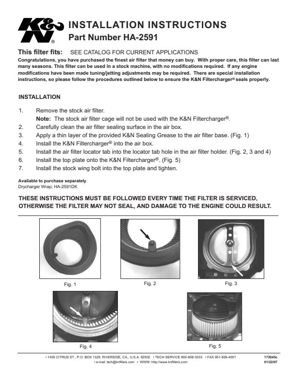 1 Air Filter, 1 K&N 1oz Sealing Grease |