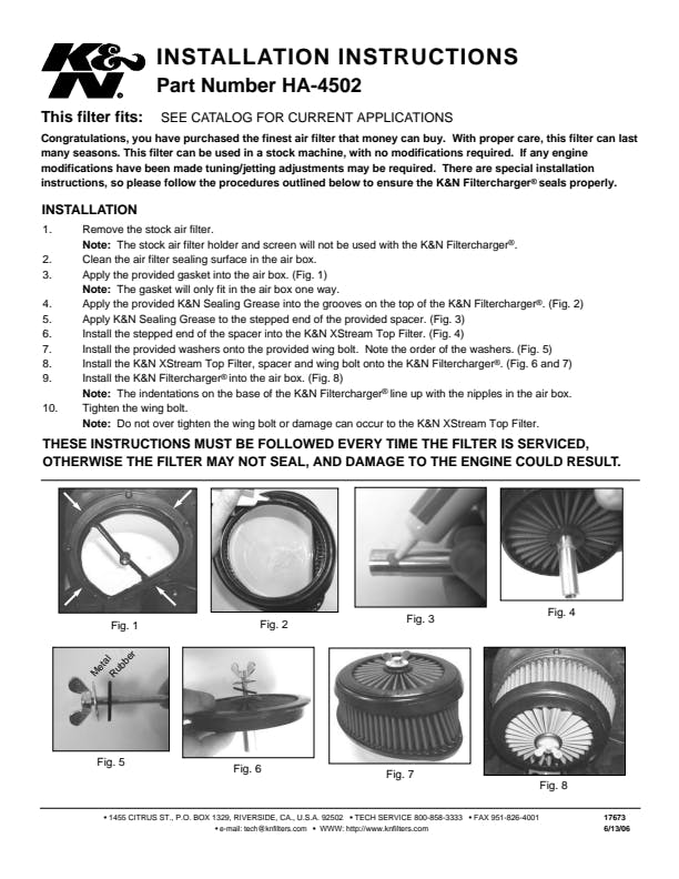 1 Air Filter, 1 K&N 1oz Sealing Grease |