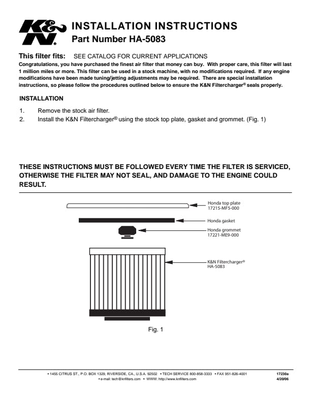 K&N's high-flow air filters are available as a replacement for your stock motorcycle air filter element. They are custom engineered to fit your specific application and are designed to provide low restriction and increased performance, while providing excellent engine protection for your motorcycle.