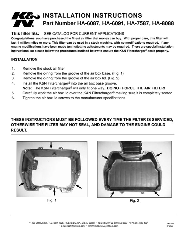 K&N's high-flow air filters are available as a replacement for your stock motorcycle air filter element. They are custom engineered to fit your specific application and are designed to provide low restriction and increased performance, while providing excellent engine protection for your motorcycle.
