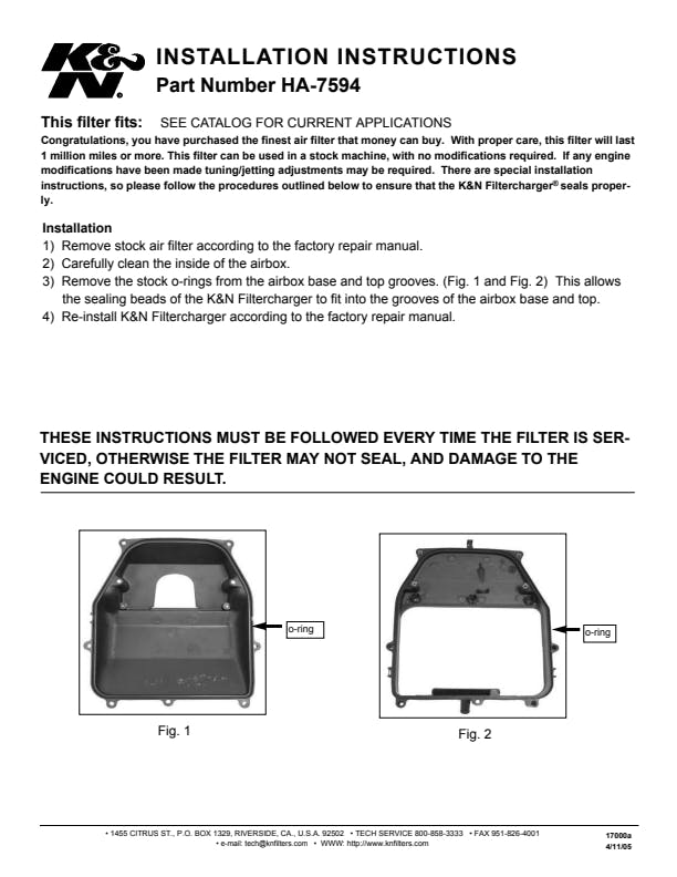 K&N's high-flow air filters are available as a replacement for your stock motorcycle air filter element. They are custom engineered to fit your specific application and are designed to provide low restriction and increased performance, while providing excellent engine protection for your motorcycle.