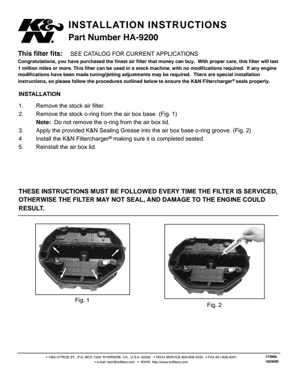 1 Air Filter, 1 K&N 1oz Sealing Grease |