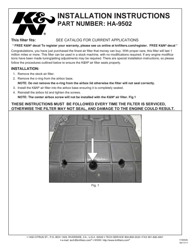 K&N's high-flow air filters are available as a replacement for your stock motorcycle air filter element. They are custom engineered to fit your specific application and are designed to provide low restriction and increased performance, while providing excellent engine protection for your motorcycle.