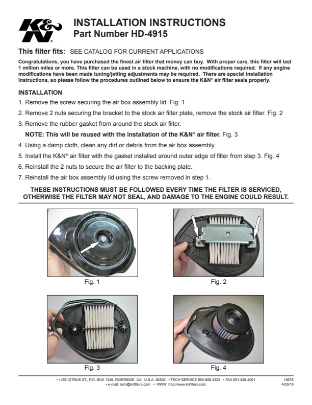 K&N's high-flow air filters are available as a replacement for your stock motorcycle air filter element. They are custom engineered to fit your specific application and are designed to provide low restriction and increased performance, while providing excellent engine protection for your motorcycle.