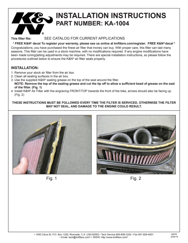 1 Air Filter, 1 K&N 1oz Sealing Grease |