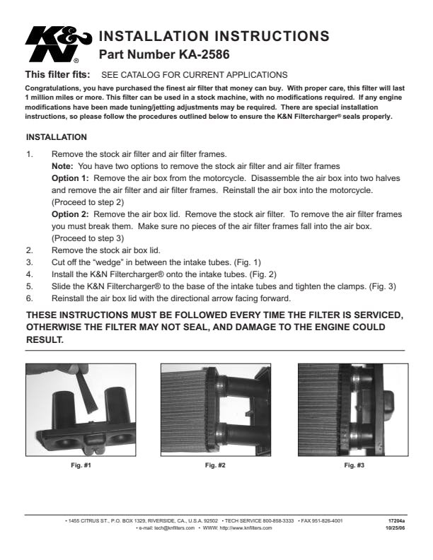 1 Air Filter, 1 K&N 1oz Sealing Grease |