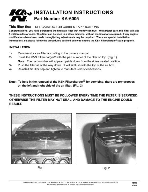 K&N's high-flow air filters are available as a replacement for your stock motorcycle air filter element. They are custom engineered to fit your specific application and are designed to provide low restriction and increased performance, while providing excellent engine protection for your motorcycle.