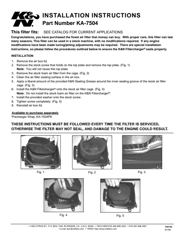 1 Air Filter, 1 K&N 1oz Sealing Grease |