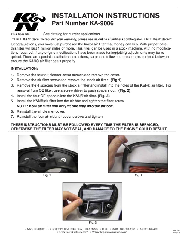 K&N's high-flow air filters are available as a replacement for your stock motorcycle air filter element. They are custom engineered to fit your specific application and are designed to provide low restriction and increased performance, while providing excellent engine protection for your motorcycle.