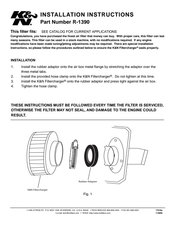 K&N's Universal Air Filters are designed and manufactured for a wide variety of applications including racing vehicles, radio-controlled cars, generators, snowmobiles, tractors, and other applications. Regardless of the angle or offset diameter of the air intake, there is probably a K&N Universal air filter for your equipment. All filters are constructed with ultra-strong molded pliable rubber flanges which absorb vibration and allow for secure attachment and can also be stretched for up to 1/16 of an inch (1.5mm) to fit in-between sizes. K&N universal air filters are washable and reusable. When used as a replacement for the OEM air filter, modifications to the jetting may be required.