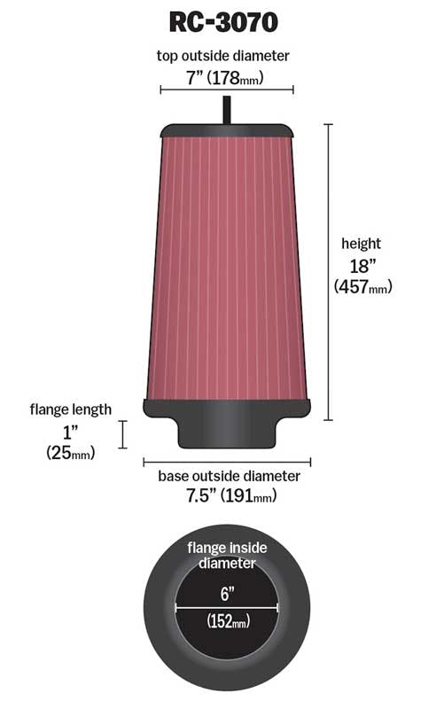 | Air Filter Large End Diameter | 7.500 in. (191mm) |