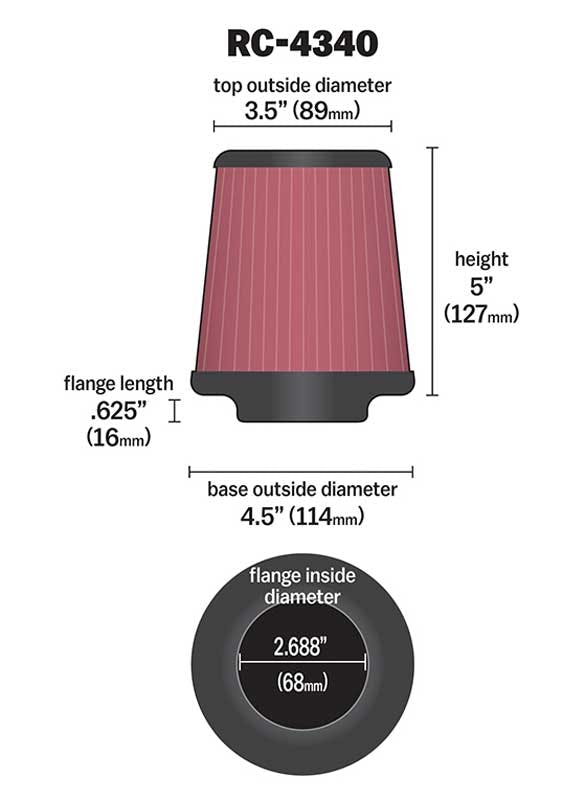 | Air Filter Large End Diameter | 4.5 in (114 mm) |